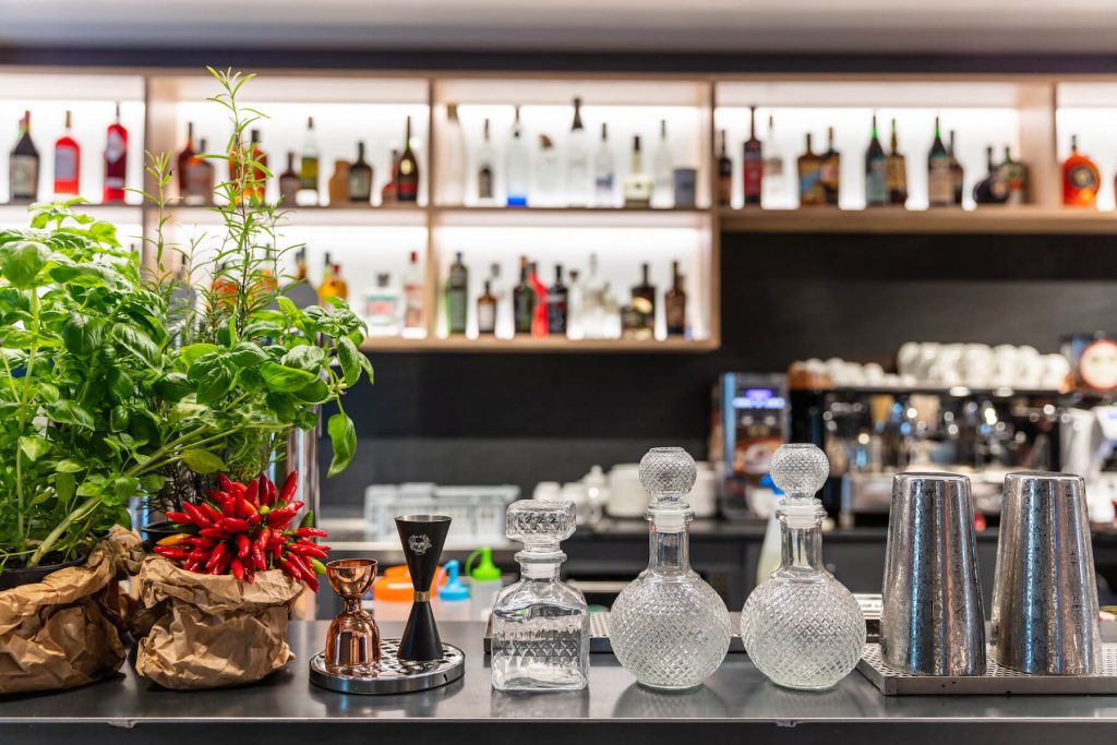 The versatility of the bar accompanies you from the first coffee of the day to unforgettable cocktails.